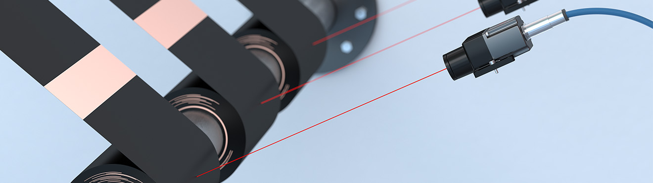 Diese Streckenveränderung wird durch die Sensoren zuverlässig und präzise überwacht. Der integrierte AUTO-Messmodus ermöglicht die zuverlässige Erfassung auch auf spiegelnden Oberflächen und matten Beschichtungen. Damit können sowohl beschichtete als auch unbeschichtete Folien überwacht werden.